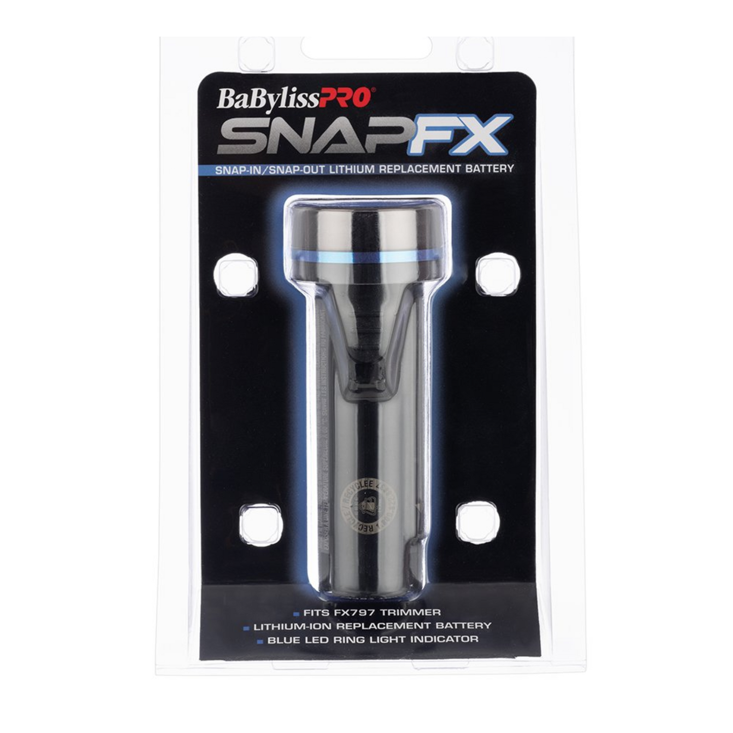 Experience uninterrupted performance with the BaBylissPRO SnapFX Hair Trimmer Replacement Battery. With its snap-in/snap-out lithium-ion technology and compatibility with the BaBylissPRO SnapFX Hair Trimmer FX797, this replacement battery ensures uninterrupted performance. The blue LED ring light indicator lets you know when it's time to recharge. With the power to switch batteries while you work, experience zero downtime and keep cutting client after client. Elevate your grooming game with the BaBylissPRO SnapFX Hair Trimmer Replacement Battery.