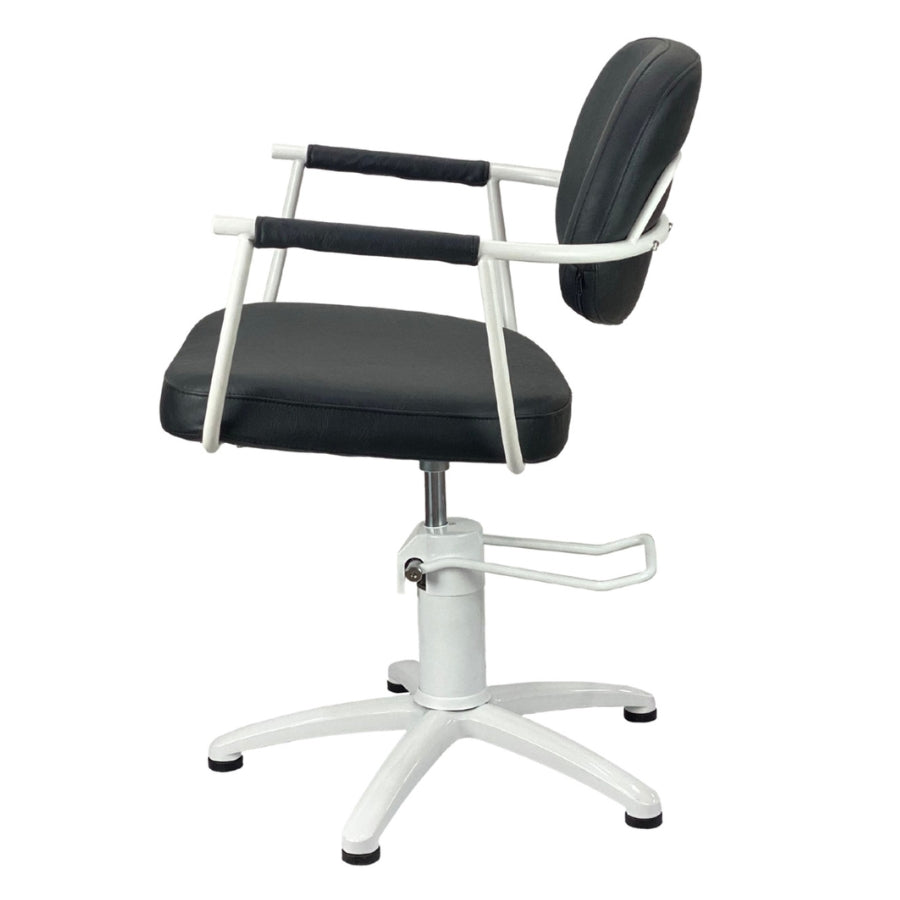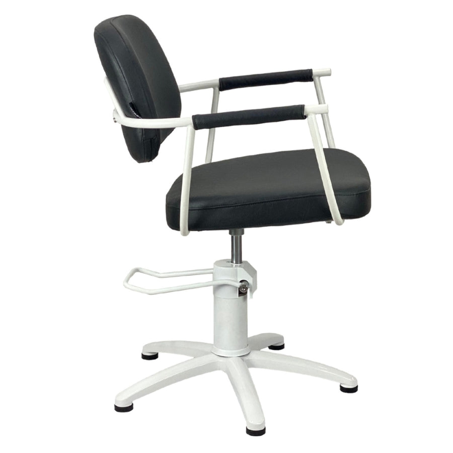 - White Sturdy Frame: Complementing the white hydraulic base, the Chelsea Styling Chair features a robust white frame that ensures both stability and durability. This cohesive design element enhances the chair's modern appeal and provides a strong foundation for daily salon activities.