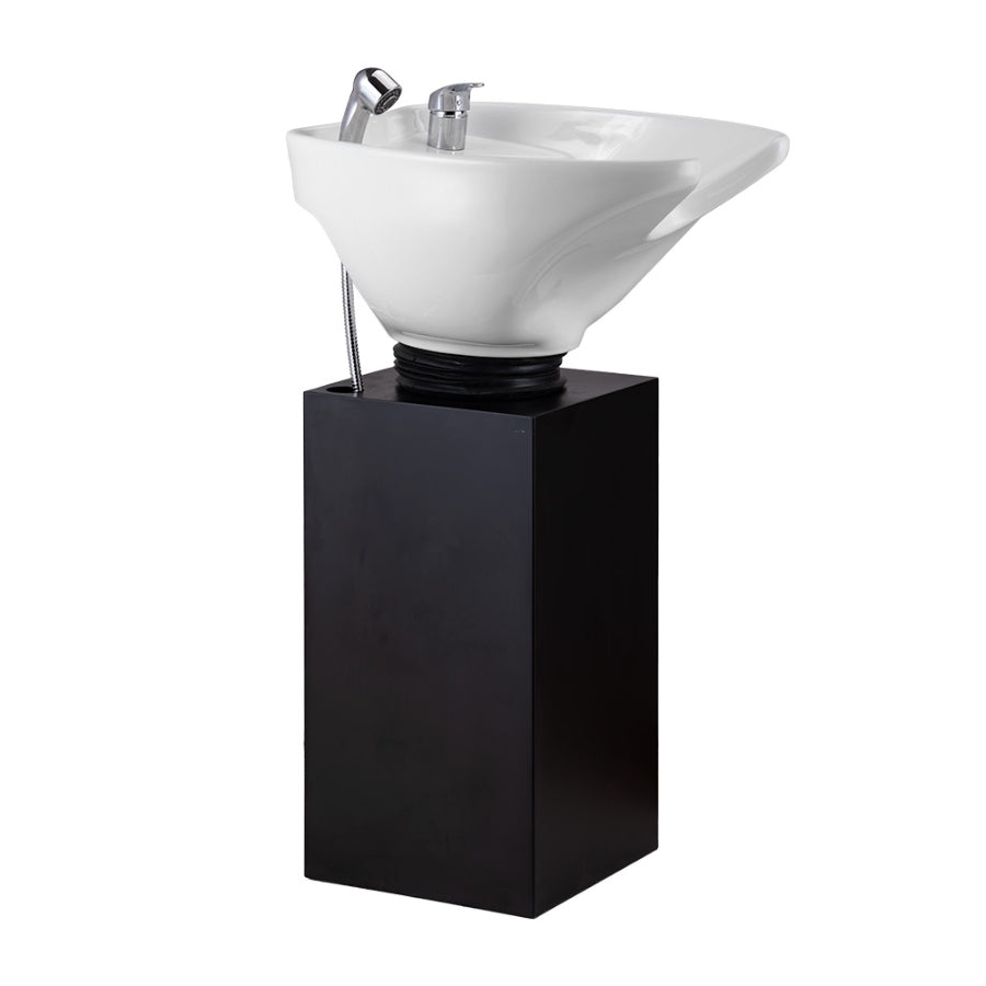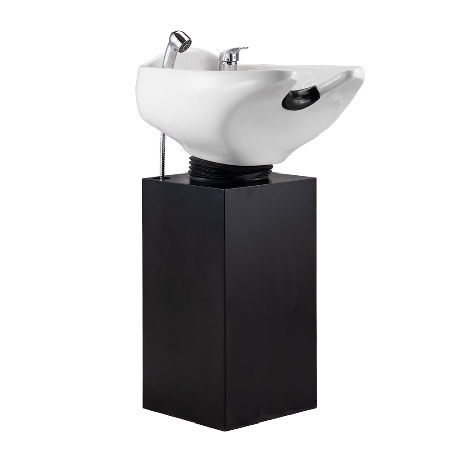 The basin pedestal is a sleek, minimalist column supporting a curved, ergonomic basin, designed for comfort and practicality in hair care environments. Its streamlined form is perfect for modern spaces.