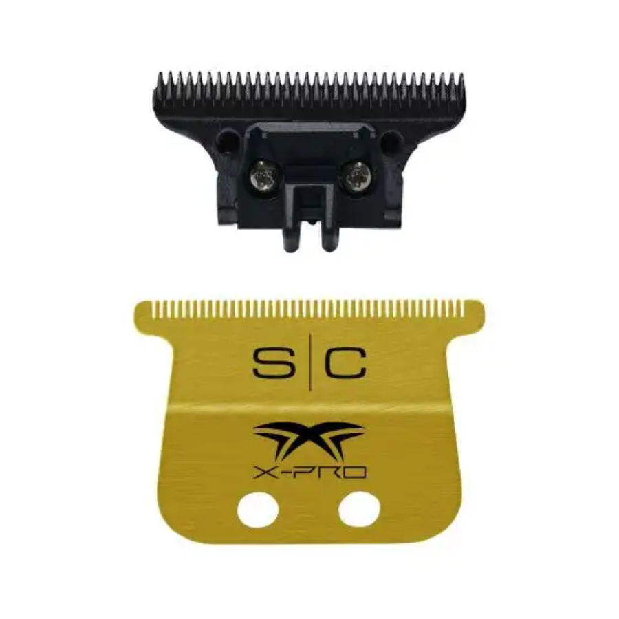 Replacement fixed gold titanium X-Pro wide hair trimmer blade with black diamond carbon DLC deep tooth cutter set.